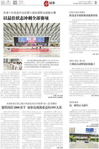 近年来,天津逐步形成以“海河工匠杯”技能大赛为带动、行业和区域竞赛为主体、企业岗位练兵和技术比武为基础,社会广泛参与、财政资金适度保障的职业技能竞赛体系。连续组织5届“海河工匠杯”技能大赛,每届约100余个赛项,直接参赛选手2万人,同时带动每年近10万名劳动者参与岗位练兵和技术比武。