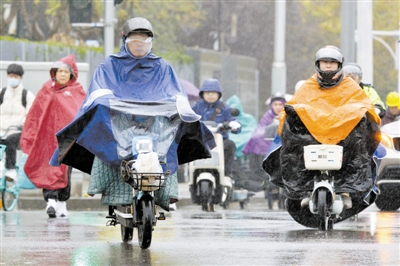 昨日,本市受冷空气影响,出现寒潮天气。清晨的降雨,让市民纷纷增加衣物抵御寒冷。