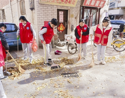 在第39个国际志愿者日来临之际,为弘扬“奉献、友爱、互助、进步”的志愿服务精神,进一步深化拓展志愿服务工作,近日,兴河里社区联合益中学校向阳花志愿服务队举办志愿清扫活动。活动中,同学们对辖区内小巷堆积的落叶进行清理。 本报记者 张立摄