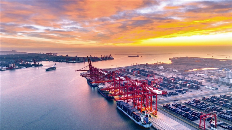 图为河北省唐山港京唐港区繁忙的集装箱码头(12月16日摄无人机照片)。