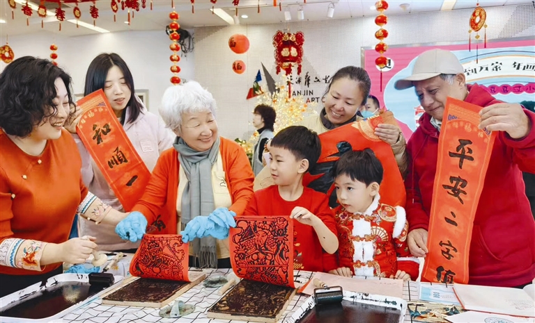 年画体验活动是现场又一亮点。杨柳青年画传承人手执年画讲述着年画背后的故事,大人小孩纷纷拿起画笔为年画上色,现场气氛热烈。新春门神与红包拓印区域同样人气火爆,市民们迫不及待动手尝试,威风凛凛的门神、寓意吉祥的红包图案逐渐清晰,大家仿佛穿越时空,与传统习俗亲密相拥。