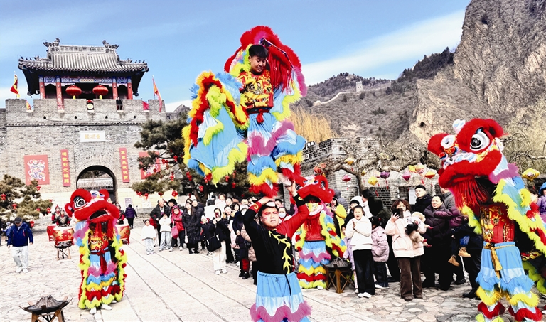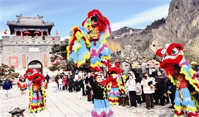 春节假期,本市黄崖关长城人潮涌动,众多中外游客前来登长城、逛庙会、度佳节。