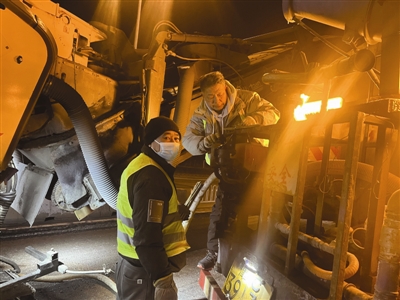 作为项目的负责人和技术人员,王武和崔冠雄都要在施工现场紧盯。必须保证按时完成进度、及时撤场。完成了一天的工作,稍事休息后还要对当天晚上的施工方案以及机械情况进行落实。“我们会协调各施工单位,合理安排施工区域,保证施工占用区域在道路同侧,避免出现车辆在道路上‘穿花绕柱’。”崔冠雄解释说。