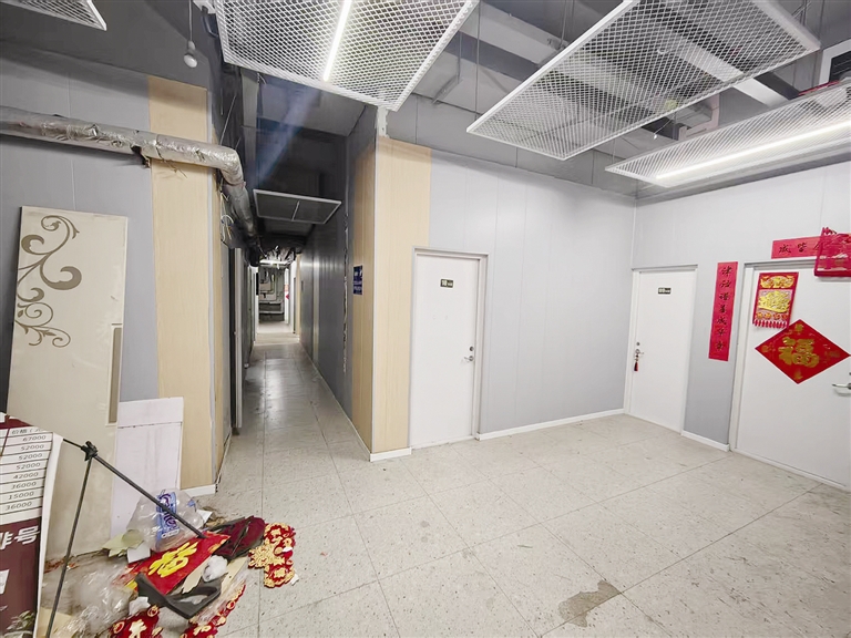 次日中午,记者在金领国际社区党群服务中心内见到了一位居委会负责人,这位负责人告诉记者,大年初五(2月2日)她就接到肖女士反映的问题了,她当时派网格员上门了解情况,网格员入户后反馈,问题属实。“然后我就联系了小区的物业经理,物业经理说能想的办法都想了,只能去负一层清掏,因为那里留有专门的清掏口,但他们现在进不去那个房间。”居委会负责人说,小区的原始开发商叫天津泰达广洋置业有限公司,后来听说这家公司内部变化很大,法人变更过好几次,这些“小房间”都是在2023年由开发商建的,建好后开发商将这些“小房间”对外出租,记者看到的那些红色广告牌就是这些“小房间”的招租广告。