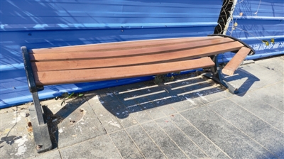 市民刘先生反映,南开区东马路与北城街交口附近,人行道上一休闲长凳的凳面木条折断损坏,影响正常使用。