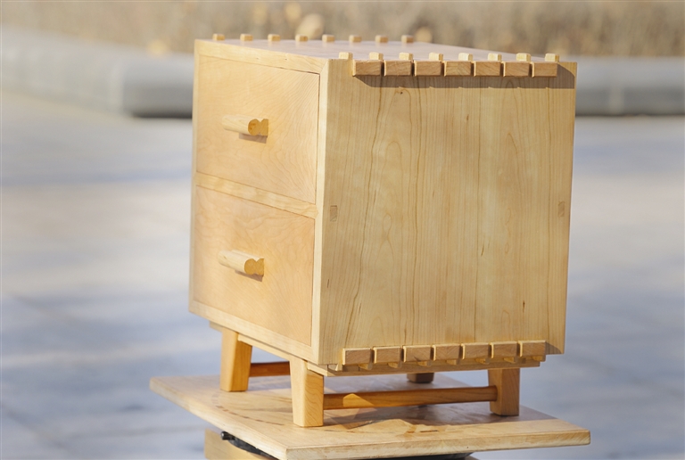 最后的成品处处可见匠心,在客户的要求下,余炳尧将工作室的logo用雕刻机刻在了床头柜的底部,包装好的床头柜发往江苏时,满足感油然而生,当客户触摸到这件床头柜时,情感体验是机器批量生产的产品无法给予的。对于木作手艺的未来前景,余炳尧充满信心。