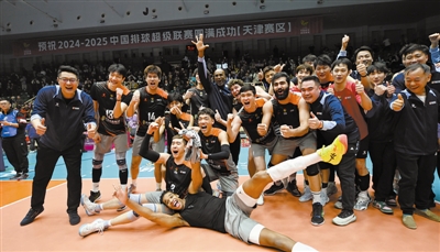 本报讯(记者 谢晨)2024—2025赛季中国男排超级联赛A级3、4名决赛次回合昨晚战罢,队史上首次跻身国内联赛4强的天津食品集团男排在主场虽然以1比3输掉常规比赛,但在随后的“金局”决战中以15比8击败山东队,荣膺季军的天津队创造了国内联赛队史最好成绩。
