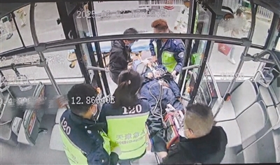 事发在3月7日下午,858路公交驾驶员齐毅由通达尚城公交站开往云锦世家公交站方向。16:40左右,当车辆行驶到泰达园公交站时,一位刚上车的老年乘客突感身体不适晕倒在车厢里。“有位大爷晕倒了!”齐毅听到呼喊赶紧将车辆停稳,而后快步来到发病乘客身边。只见乘客面色苍白,意识模糊,齐毅赶紧拨打120和110求助,并向车队汇报了情况。