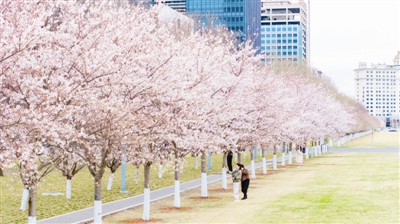 春意渐浓,泰达城市公园内,绵延近1公里的樱花大道上早樱纷纷绽放。 记者 赵建伟 摄