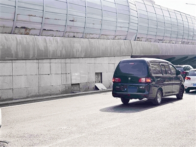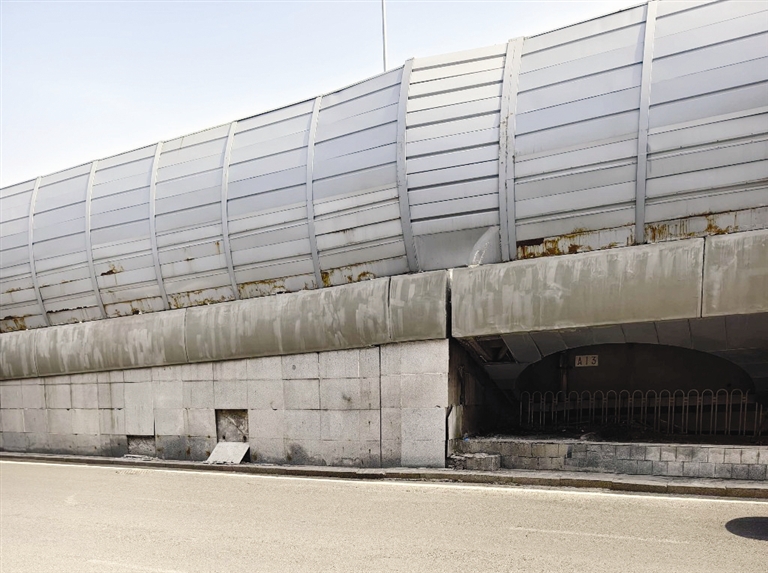 4月3日,记者来到黑牛城道紫金山路立交桥附近,在可园里小区附近的黑牛城道辅路,记者看到快速路桥袱下石材缺失,脱落的石材掉落在桥下的便道上。记者沿快速路辅路由西向东走,一百多米的桥面石材均出现了起鼓的情况,桥洞附近的石材也有不同程度的脱落情况。在黑牛城道的南侧辅路,紫金山路以西区域,桥袱下面四块石材整体缺失。记者仔细观察,石材之间的衔接处已经出现缝隙,存在大片脱落的危险。快速路辅路往来车流量极大,石材一旦脱落就会掉落在行车道上,存在不小的安全隐患。