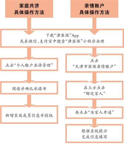 本市职工医保个人账户的共济对象为:父母、配偶、子女、兄弟姐妹、祖父母、外祖父母、孙子女、外孙子女在内的近亲属。参保人可通过“津医保”App、微信或支付宝“津医保”小程序便捷地绑定本市参保的近亲属,并可随时对使用人进行调整、变更,还可通过查询功能对个人账户使用情况进行查询。