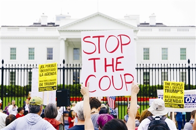 在华盛顿的白宫门口,抗议人群手持“停止非法驱逐”“工人而非富人拥有权力”“宪法危机已经到来”等各色标语牌表达不满。在华盛顿一家非营利组织工作的弗兰克说,现任政府在没有进行任何审理的情况下,取消学生签证、驱逐移民,把他们赶出美国,这违反正当法律程序。