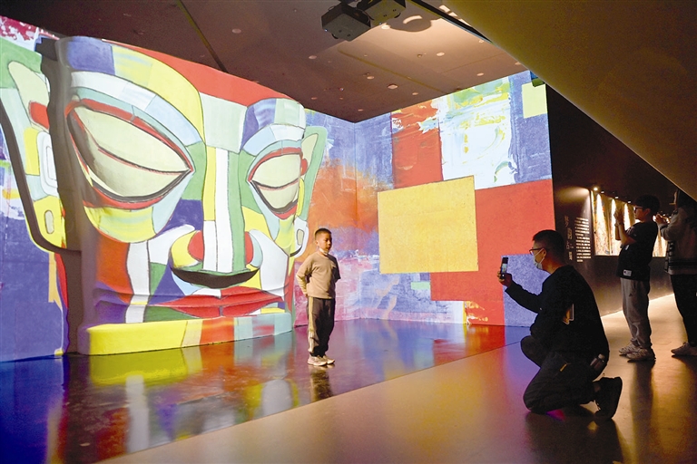 昨日,《一醒惊天下·三星堆沉浸式光影艺术展》在天津国家海洋博物馆无界展厅开展。记者 周伟 摄