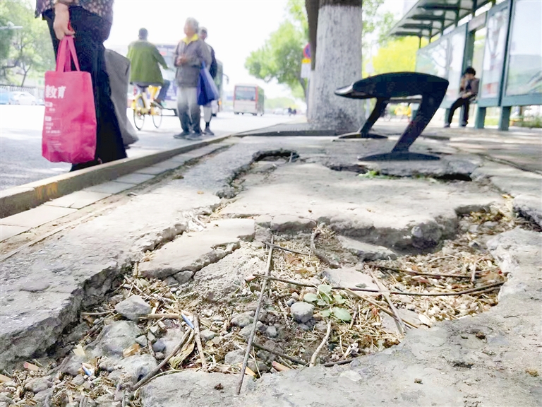 市民沈先生反映,南开区红旗路西湖道公交站前人行道出现破损凹陷,给过往行人造成安全隐患。