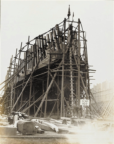 据《天津法国船厂成立记》介绍,同时建造的船舶共6艘,载重量从2200吨至2500吨不等。在相册中,能看到正在建造的小艇。当时这个造船厂雇用的中国工人达3000人。