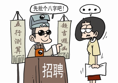 近日,海南一名网友称“求职面试被HR索要生辰八字”引发关注。有媒体记者以应聘者身份向涉事公司咨询岗位招聘要求,该公司HR同样表示“初审需要提交五行测算”。涉事企业工作人员表示:我们不搞九型人格测试,我们有专门的老师来进行五行测算,测算一下你的性格适不适合这个岗位。 ——羊城晚报