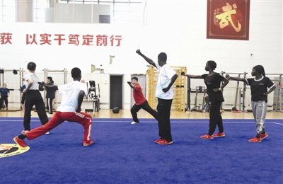 天津武术队的训练馆里有几位黑皮肤的队员格外引人关注,他们是来自塞内加尔国家青少年武术队的成员,为了备战明年的青奥会他们特意来天津“取经”,指导他们训练的,除了天津队教练以外,还有一位是国家体育总局特意推荐来义务传道授业的武术长拳高手,他就是首都体育学院的武术与表演学院武术副教授赵庆建。赵老师是2008年北京奥运会武术冠军,中国关心下一代健康少儿武学传承研究院副院长,北京市大学生体育协会武术分会副秘书长,纽约国际武术锦标赛形象大使,美国武术家协会名誉会长。由于本届青奥会设置太极拳和长拳两个全能项目,赵教授独一无二的经历以及他对长拳项目的造诣和特长,让他成为指导这些塞内加尔孩子的最合适人选。