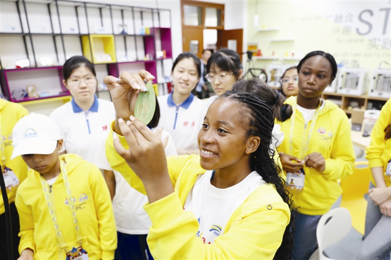 一朵朵“非洲堇”丝网花在大家手中“绽放”。帅气的古巴选手马思煜说:“我的国家也有类似技艺,但这是我第一次接触这样的课程。”他要带着作品回国,也希望能在古巴再制作同样的花朵,“一起放在家里最显眼的地方”。那时,一头连着中国课堂的回忆,一头系着跨越大洋的情谊。