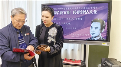被誉为“五大道活字典”的金彭育,今年已80岁高龄。活动中,金彭育讲述了中央戏剧学院表演系主任、著名表演艺术家金乃千与五大道的关系以及生平经历。1935年出生于天津长沙路敦厚里7号的金乃千,曾在长沙路42号外祖父家居住过,在北京工作后,回津常住马场道30号叔叔家。金乃千曾在耀华小学、市第一中学就读。高中毕业后,考入中央戏剧学院表演系,1957年毕业后留校任教。金乃千是从天津成长起来的戏剧表演艺术家,也是五大道街区的原住民。他曾在《克里姆林宫的钟声》中饰演札别林,在《伪君子》中饰演奥尔贡,在《屈原》中饰演屈原等角色。1978年,他在话剧《杨开慧》中成功地饰演了毛委员,这是中国话剧舞台上出现的第一个完整的毛泽东艺术形象,演出轰动了全国。1988年,他随中国赴南极科学考察团出航,在电视剧《长城向南延伸》中饰演海洋生物学家江之荣教授,该片曾获1989年第十届全国优秀电视剧飞天奖。他也是第一个赴南极拍戏的文艺工作者。由于过度劳累,在南极科学考察团回国途中,金乃千于新加坡突然病逝,终年54岁。