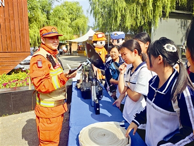 在蓟州区的宣传现场,蓟州区森防办联合区应急局、区林业局、区气象局、公安局蓟州分局、蓟州区消防救援支队、罗庄子镇、国家消防救援局天津机动队伍等单位,宣传现场设置在溶洞景区。宣传现场设置森防知识咨询台,向罗庄子镇村民和来蓟游客发放秋冬季节森林防火安全知识宣传手册、防火条例等资料。宣传人员为大家科普什么是森林火灾隐患、如何逃生自救、防火预案的意义等,并解答群众有关森林防灭火问题,引导村民和游客遵守法律法规,提高进山村民及来蓟游客的防火意识。