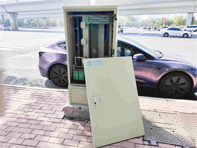 市民高女士反映,河东区卫国道靠近唐家口公交站附近,一个写有“中国移动 勿忘锁门”字样的通讯箱,箱门损坏脱落在人行道上,妨碍通行,望尽快修复。 文/摄 记者 庄媛