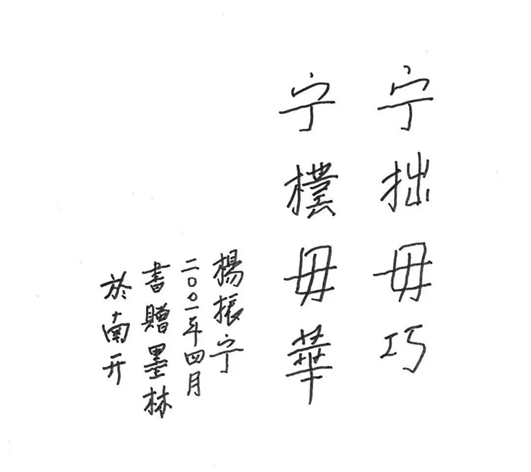杨振宁与南开的联结从未中断。2019年,他委托顾秉林院士转交手书“海冰楼”题字,为南开校园增添了新的文化印记。省身楼内陈列的范曾先生画作《陈省身与杨振宁》,以及他题写的“千古存心事,欧高黎嘉陈”诗句,定格了两位大师的学术情谊与南开情缘。