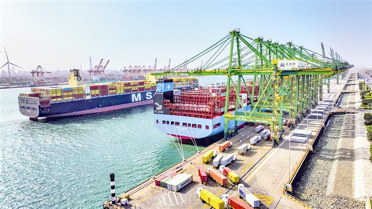 在服务京津冀协同发展方面,天津港充分发挥“海上门户”作用。环渤海内支线运力较六年前增长53%,建成了雄安新区服务中心、京津协同港口服务中心,70%的外贸集装箱来自京津冀地区,为京津冀地区的经济发展提供了强大的物流支撑。积极融入共建“一带一路”,天津港海向开通了南美西、美东等直航航线,“一带一路”航线达到69条;陆向发挥3条大陆桥通道优势,2024年跨境陆桥运量7.1万标准箱,位居全国前列。