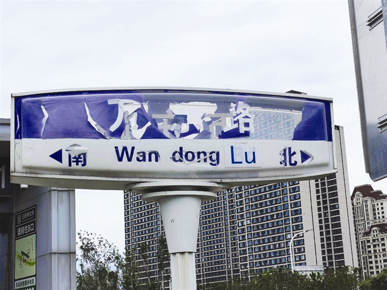 市民刘先生反映,河东区万东路与津滨大道交口,一个路牌上塑料框内喷涂的道路名称字迹已经模糊不清,无法辨识,望尽快修复。 文/摄 记者 庄媛
