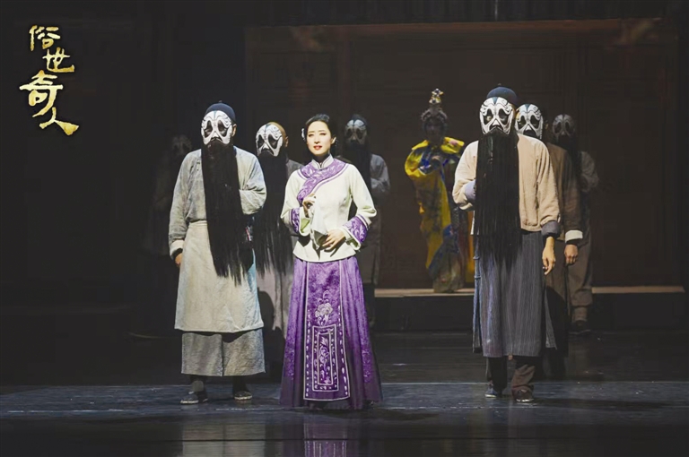 大幕拉开,一束追光穿过宏大的舞台,落在“关二姐”的身上。她以大段“情感饱和度”拉满的独白牵引出天津奇人、天津往事和天津式哲学,应和着话剧《俗世奇人》的一个寓意——于俗世中照见你我。