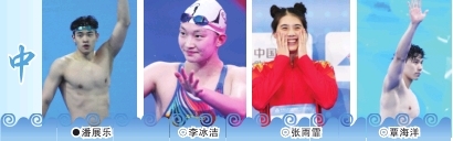女选手方面,河北名将李冰洁在本次全运会上拿到了4金1银1铜,堪称“牌王”。在个人项目中,李冰洁包揽了400米、800米和1500米3枚自由泳金牌,其中800米领先亚军超过8秒。获得银牌的毛奕涵说:“我已经游出了个人最好成绩,但李冰洁的速度确实让我们望尘莫及。”此外,“小哪吒”张雨霏也夺得了女子100米蝶泳和50米蝶泳两枚金牌,其中100米蝶泳以56秒88的今年个人最佳成绩夺冠,也是决赛中唯一游进57秒的选手。