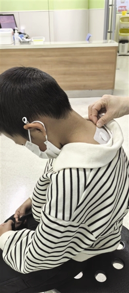 周日,记者在天津中医药大学第二附属医院儿科门诊看到有不少家长带着孩子有序等候。一位带着孩子来贴生长贴的家长告诉记者,儿子已经上小学五年级了,以前不好好吃饭,坚持贴了两次以后,胃口明显打开了,睡觉也好了。在诊室内,记者看到医生先是通过中医手法在儿童背部、腿部等部位找到相应穴位,然后将一个个涂满中药的圆形药贴敷在穴位上。