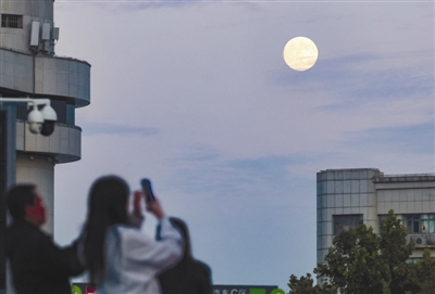 昨日,中秋佳节,夜晚津城皓月当空,路人纷纷拍照留念,共赏圆月。 记者 吴迪 摄