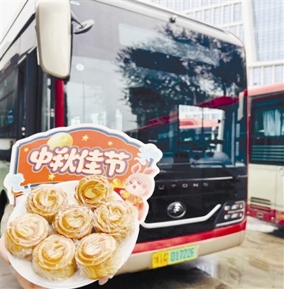 这份节日的温暖,也在十八局中心车队传递着。为了给乘客送上节日惊喜,车队提前定制了带有公交LOGO的月饼模具,中秋节当天,公交职工在候车驿站将一个个印有公交元素的“定制月饼”递到候车乘客手中。一位头发花白的老奶奶接过月饼,笑得格外开心:“你们也太贴心了,我家孩子是个公交迷,要是看到这个印着公交图案的月饼,肯定高兴得不得了!”