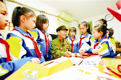 日前,北辰区佳园东里社区邀请社区里的老战士史德山为红桥区实验小学的学生开设“红色课堂”,听爷爷讲述当年他作为一名中国人民解放军战士、一个天津娃,参加解放家乡天津的战斗故事。记者 张立 摄
