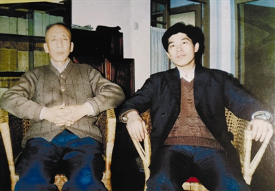 上图:1987年孙犁(左)与自牧在天津耕堂合影