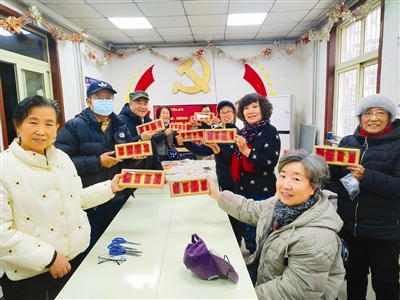 昨日上午,月纬路社区活动室内,十多位居民围坐在长桌前,在社区工作人员的指导下开始动手制作宋锦相框,他们挑选合适的图案和粘贴装饰,固定好布料,将“如意”“喜至”“长乐”“福来”等春节祝福词语裁剪成精致的小卡片,粘贴在相框内部锦帛处,营造出喜庆祥和的视觉效果。