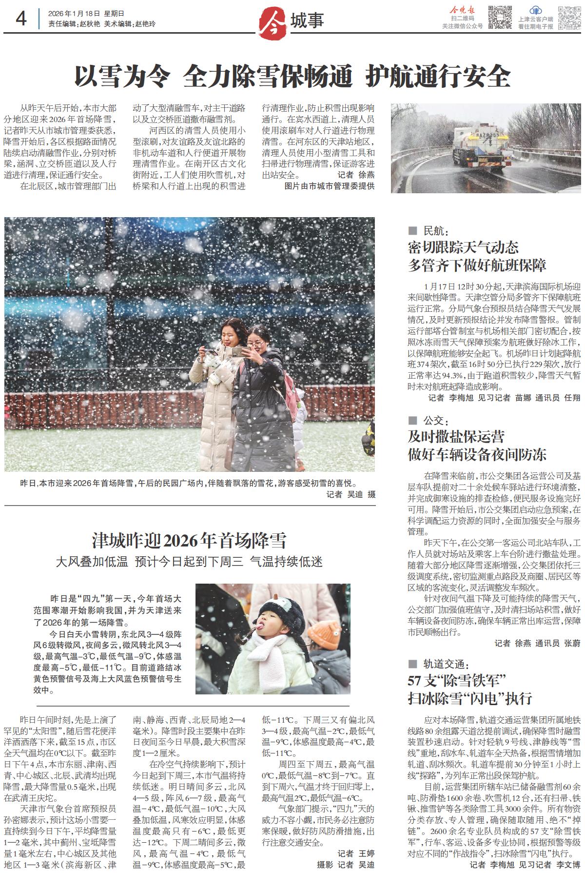 津城昨迎2026年首场降雪