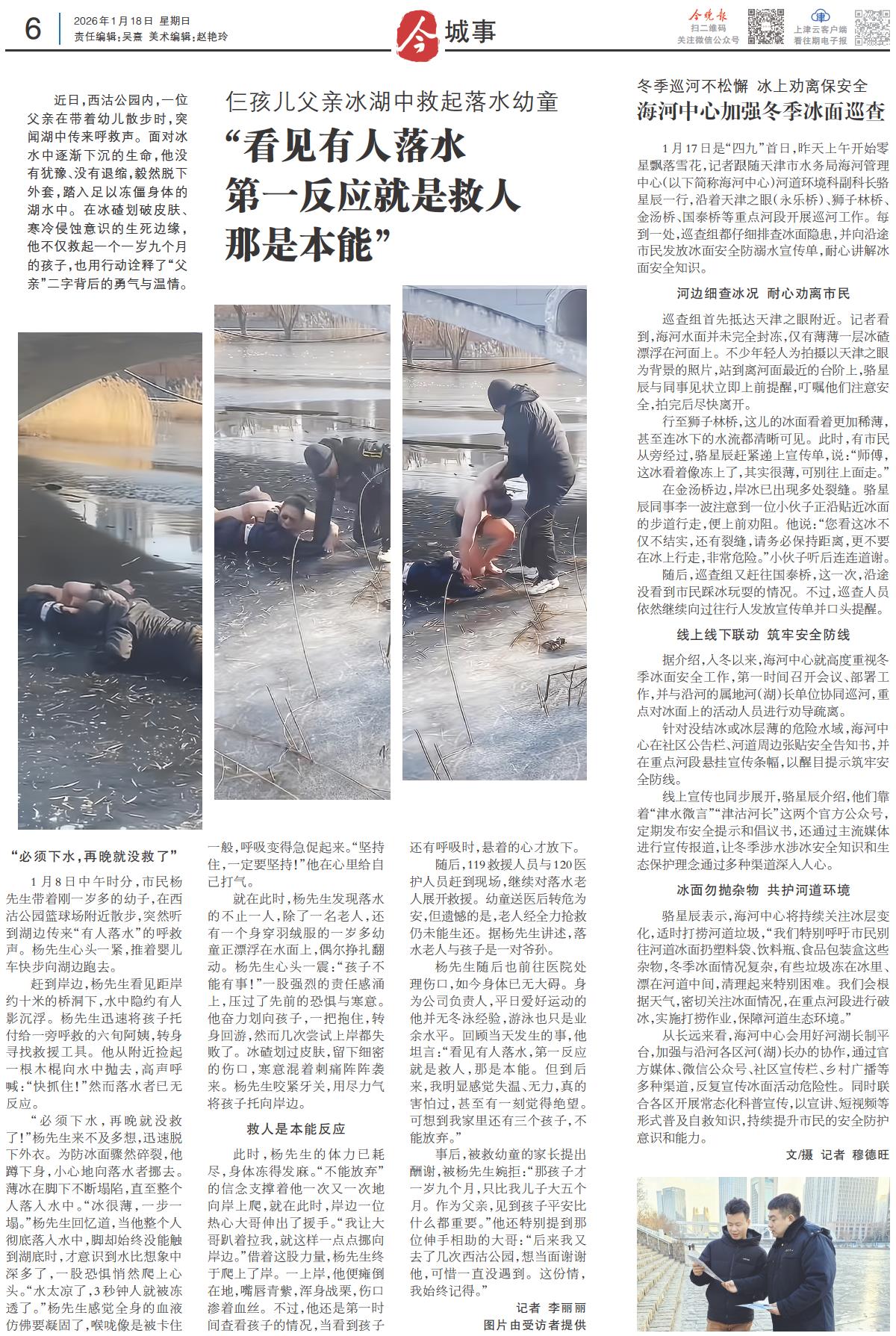海河中心加强冬季冰面巡查