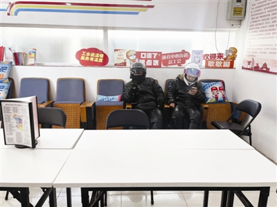 为更全面了解驿站的使用情况,昨日上午10时17分,记者再次来到这里。推门进入时,已有五位外卖小哥坐在屋内。“这会儿没单,进来歇歇,接点热水。”一位正在饮水机前接水的小哥说。其间也陆续有其他外卖小哥进入,直到临近中午订单增多,他们才陆续离开驿站,重新投入工作。