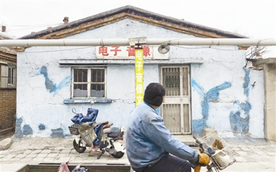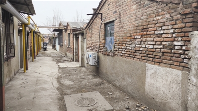 大梁子南岸胡同的砖墙上布满岁月痕迹。