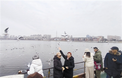 进入冬季,大批海鸥如约从西伯利亚南迁,栖息于海河越冬。为近距离观赏这群雪白的访客,不少市民专程登上大梁子渡口的轮渡。人们倚着船舷,看着精灵般的鸟儿随波翩跹、逐浪翻飞——清冽的风、跃动的羽毛、粼粼的波光,共同晕染开一幅灵动的冬日画卷,笑容便不自觉挂上了脸庞。