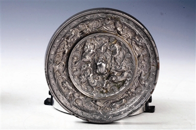 馆藏唐瑞兽羽人葡萄纹铜镜