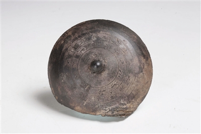 天津博物馆馆藏东汉阳燧,直径8.3厘米。此器鼻钮,外观似斗笠,表面铸阳文铭文两周,书体为汉隶,均属吉祥用语。阳燧形似凹面镜,是周代始用的利用太阳能取火的工具,也是中国古代的伟大发明。从《周礼》至北宋沈括《梦溪笔谈》等都有关于阳燧取火的记载。此器是传世仅见的有铭阳燧,并且有使用过的痕迹,科学和历史价值都极高,极为珍贵。