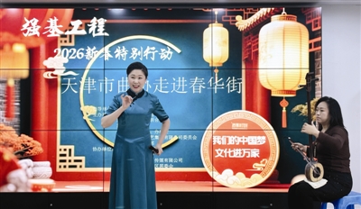昨日,“强基工程”2026新春特别行动之天津市曲协走进春华街专场演出,在新博园社区温情上演。曲艺名家与优秀青年演员轮番登台,带来京韵大鼓、天津时调、岔曲等非遗鼓曲名段演唱,让社区居民在家门口感受非遗鼓曲的独特魅力。