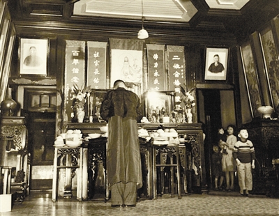 后手,我随着我父亲海关工作调动就离开北京了。我去过哈尔滨,最后在天津落脚了。到1945年日本投降以后,那时候我是周岁整二十,虚岁二十一,我出嫁就嫁到天津这老徐家了。从前不也提过嘛,就是徐家大院(注:1940年代,唐敏芝嫁入原英商天津麦加利洋行买办徐朴庵家,现徐朴庵旧居为天津老城博物馆,天津市第四批文物保护单位),我老伴儿的祖父不就是徐鹤亭的兄弟,叫徐鹤桥嘛,他们家里头经济条件比较富裕。这过年规矩我就看着有一个地方新鲜,就是什么呢?上供祖宗牌位,还有财神什么的时候,上供一只鸡、一条大鲤鱼,还有一块肉,这三样都是生的,从鱼池用绸子条把鱼都绑好了,另外还有点心、水果什么的。