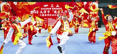 2026年天津市“健身大拜年”主题系列活动启动仪式昨日在天津东丽体育中心举行。本次活动由天津市体育局、天津市东丽区人民政府联合主办。展演环节中,《盛世腰鼓》《武韵东丽》《牙拍舞》《你好我好新年好》等节目轮番上演,展现了天津全民健身的多样风采。记者 孙震 摄 相关内容详见15版
