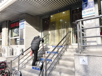 多位老年市民表示,银行是居民日常生活中离不开的公共服务场所,对行动不便的老人和残疾人来说,一级台阶就是一道坎,十几级台阶,直接把他们挡在了金融服务门外。