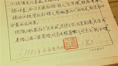 在天津市档案馆,宣传部工作人员王琪琪找到了一份早年马三立的相声手稿,并说起了一段故事:“这份是马三立老先生亲自整理的《起名字的艺术》的手稿,能够看到这段相声收底的包袱是‘吃狗不理包子’。但是在刚开始的演出中,并没有这个梗。这段相声讲的是一对青年男女从相识到相恋、结婚,再到离婚的过程。其中在前几个阶段,下的饭馆名字都非常应景,就是到离婚这段却没有‘扣上’合适的饭馆。有一次演出结束后,一名观众到了后台,给马老提出一个建议,就是离婚吃饭去‘狗不理’这段。马老听罢拱手称谢,这才有了手稿里面记载的‘狗不理’桥段。”