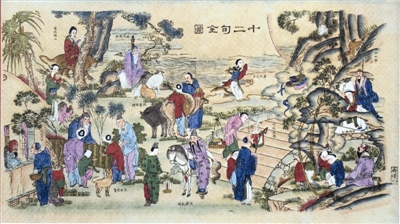将十二个故事同幅安排,《十二旬全图》在传统民间年画中独树一帜。