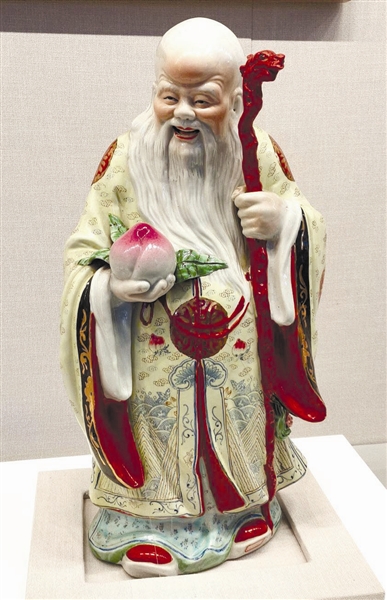 图③周邓纪念馆藏粉彩寿星立像